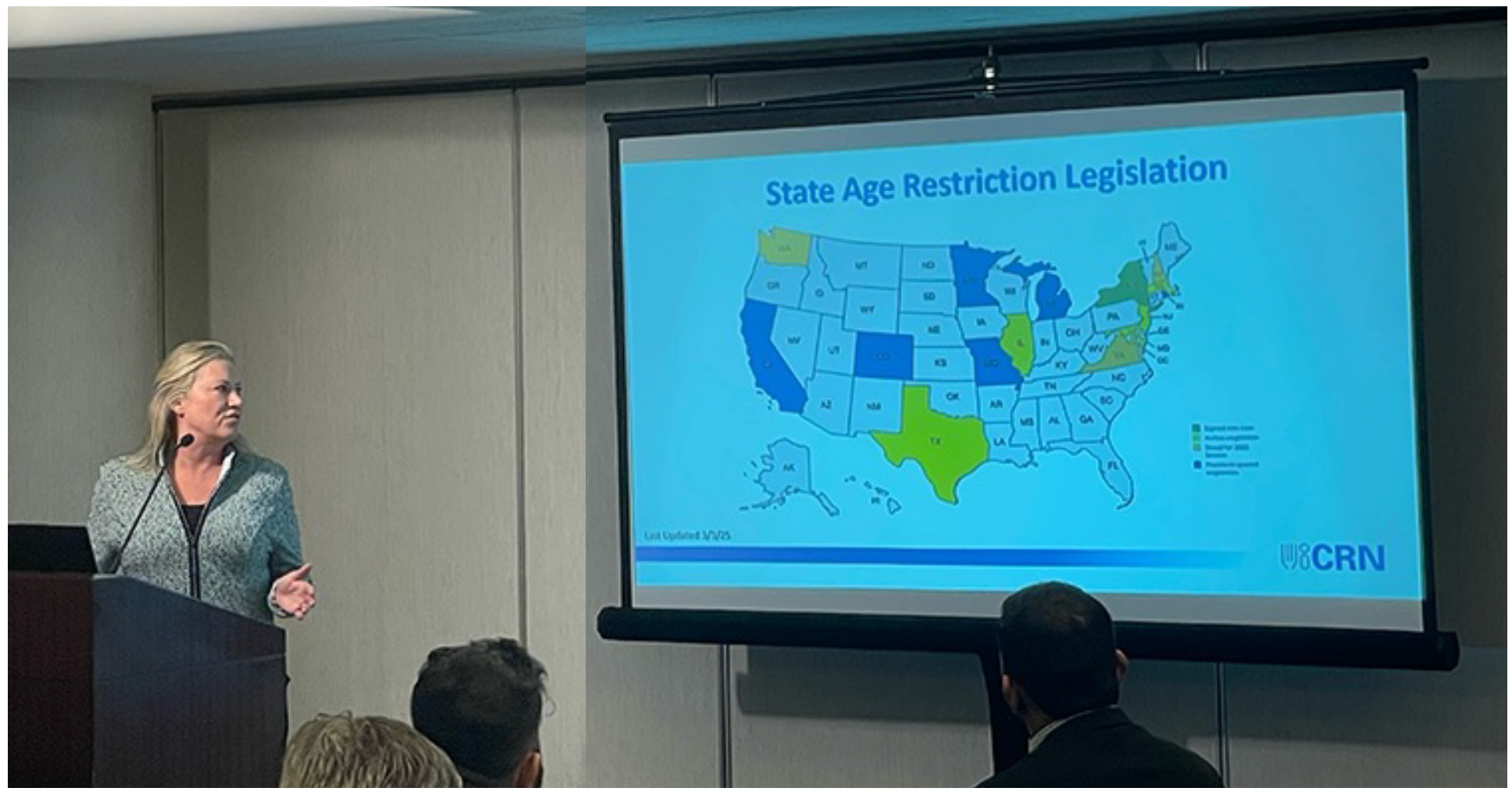 Julia Gustafson, VP Government Relations, discusses the spate of age restriction proposals in the states during the CRN Member Breakfast Briefing at Expo West.