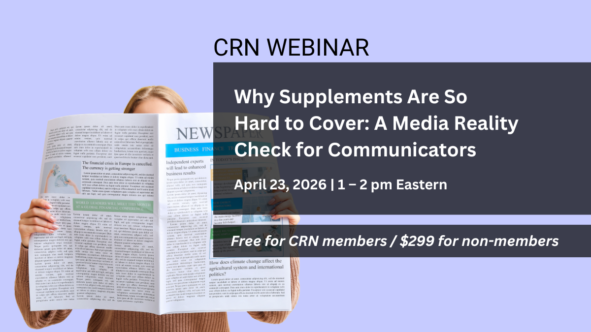 This webinar brings together two mainstream health reporters/editors and a leading trade journalist for an open, behind-the-scenes conversation about how supplements are covered, where misunderstandings commonly arise, and why even well-intentioned reporting can miss the mark. Panelists will discuss the pressures shaping health journalism today, the assumptions reporters bring to the supplement space, and what communicators can do to bridge the gap—without overpromising, overspinning, or talking past the media.