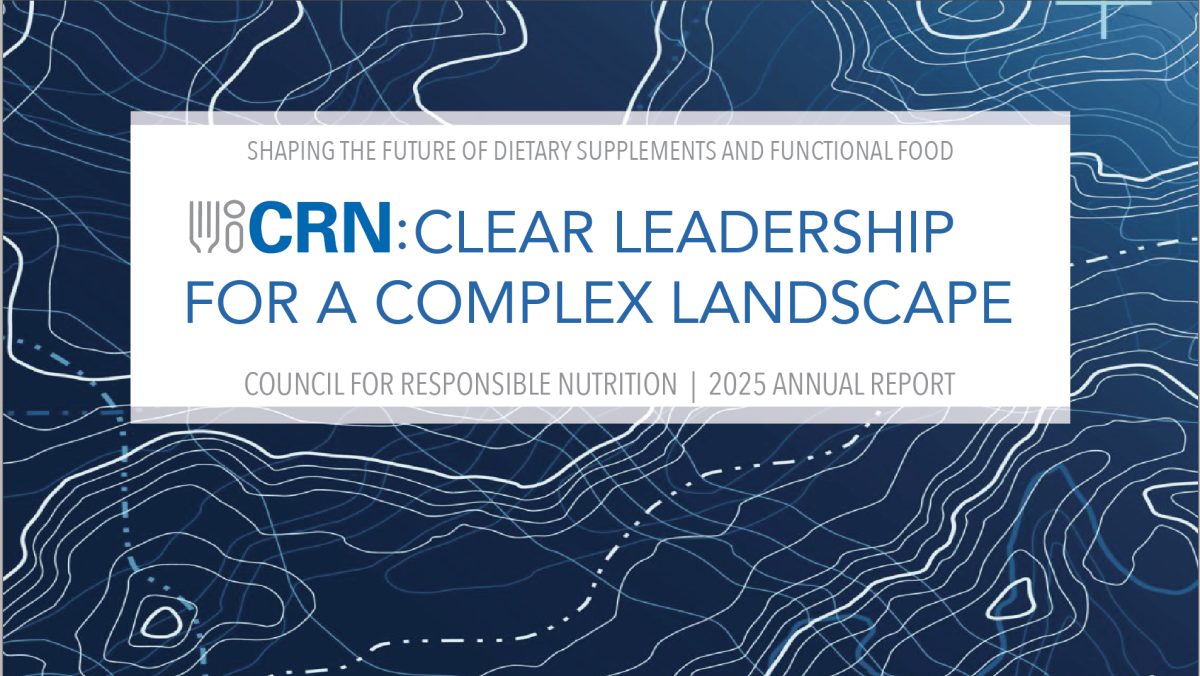 CRN's 2025 annual report, “Clear Leadership for a Complex Landscape,” provides highlights of a year defined by rapid change across policy, regulation, and public perception in which CRN proactively influenced the environment in which our members compete, innovate, and communicate with consumers, taking swift and strategic action to protect the dietary supplement and functional food industry.