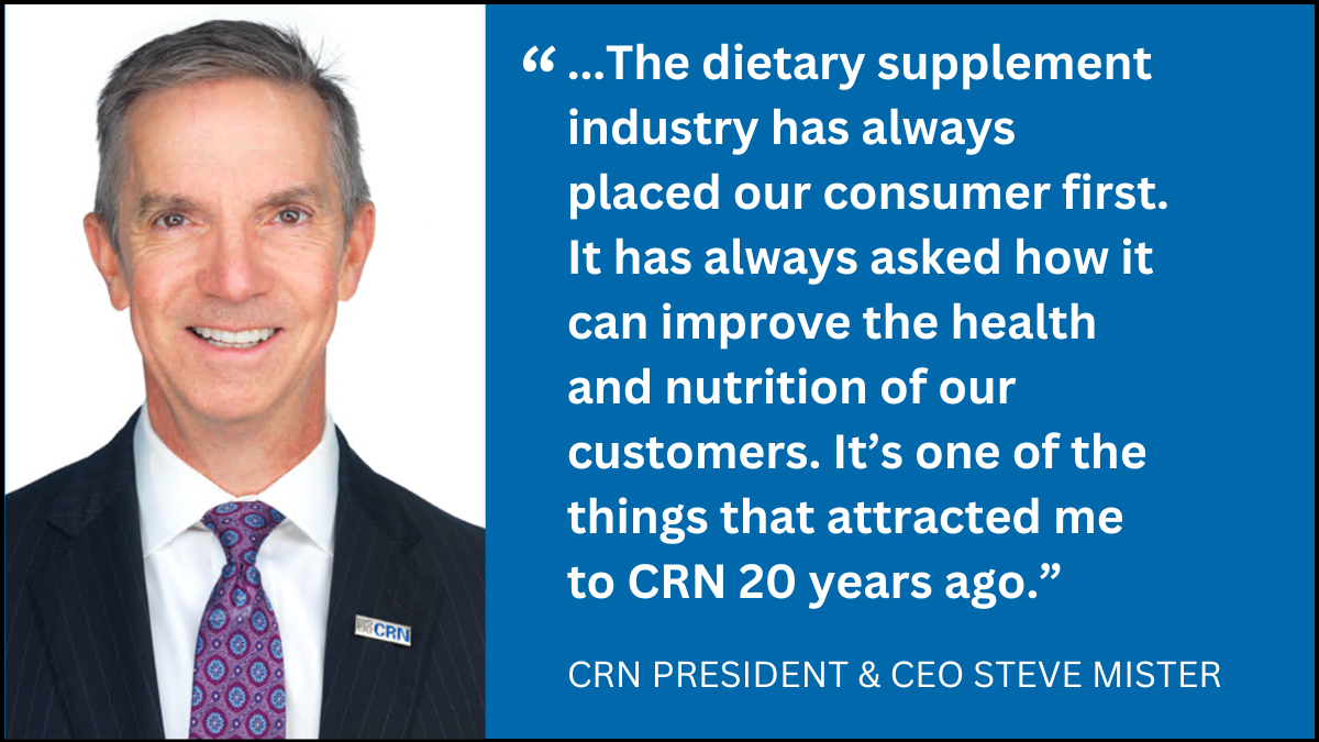 With all due respect to Calley—and he and I have spoken since he made those remarks—I think he misunderstood our concerns what our industry has been doing for the past 50 years by suggesting publicly that we are just in it for ourselves. This industry—the dietary supplement industry—has always placed our consumer first. It has always asked how it can improve the health and nutrition of our customers. It’s one of the things that attracted me to CRN 20 years ago.