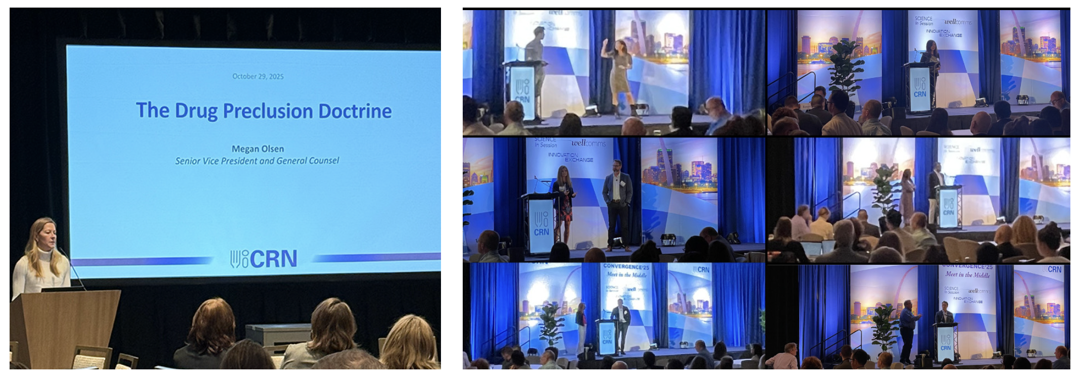 Megan Olsen, SVP and General Counsel, leading the team’s New York state age restriction litigation efforts in consultation with law firm Cozen O’Connor, shared updates on the case during the CRN Member Breakfast Briefing at SupplySide Global as well as the drug preclusion issue and CRN’s efforts to secure revisions to FDA’s ”DSHEA disclaimer.” Also pictured, CRN’s second annual “Innovation Exchange” event, featuring steering committee-selected presentations on cutting-edge ingredients and technologies.