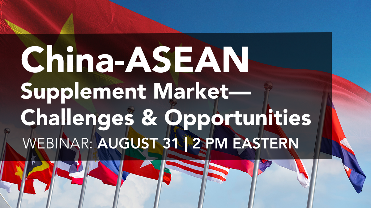 Participate in CRN’s upcoming industry-wide webinar, China-ASEAN Supplement Market—Challenges and Opportunities, to hear the latest on:
