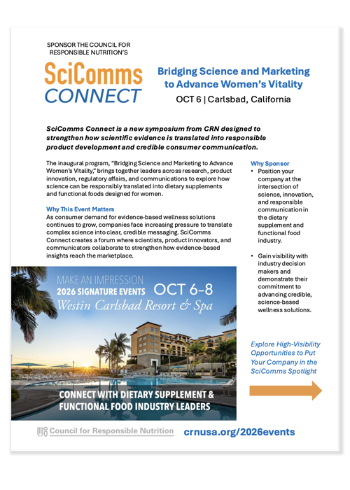 The inaugural program, “Bridging Science and Marketing to Advance Women’s Vitality,” brings together leaders across research, product innovation, regulatory affairs, and communications to explore how science can be responsibly translated into dietary supplements and functional foods designed for women.